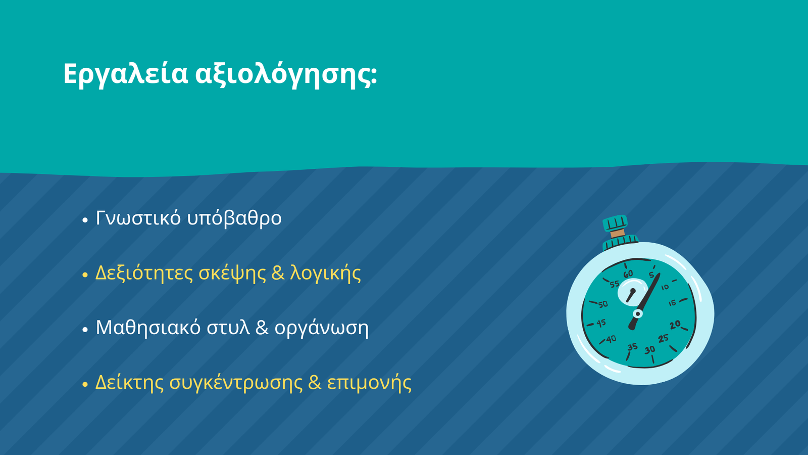 Το Διαγνωστικό Τεστ Εισόδου στο Λύκειο είναι ένα ολοκληρωμένο εργαλείο που αξιολογεί τόσο το γνωστικό υπόβαθρο (Μαθηματικά, Γλώσσα, Φυσικές Επιστήμες) όσο και τις μαθησιακές δεξιότητες (λογικομαθηματική/λεκτική/χωρική σκέψη, συγκέντρωση, επιμονή, μαθησιακό στυλ). Στόχος είναι να δώσει έγκαιρη, εξατομικευμένη εικόνα για τα δυνατά σημεία και τα πεδία υποστήριξης κάθε μαθητή, συμβάλλοντας στη στοχευμένη διδασκαλία.